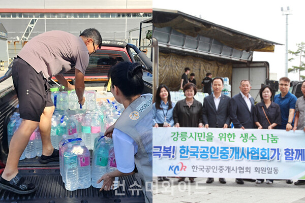 한국공인중개사협회도 강릉시민을 위해 생수 1만1000여병을 마련해 전달했다. 협회 회원들의 참여로 긴급히 마련한 희망생수 6000병은 강릉시청에, 나머지 5000병은 강릉지회를 통해 가뭄으로 생활용수와 식수 확보에 어려움을 겪고 있는 시민과 회원들에게 전달한다.