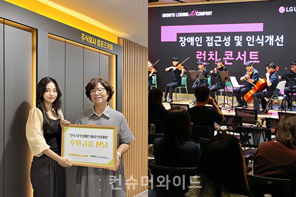 [컨슈머와이드-장하영 기자] 기업들이 장애인의 인식 개선과 직업 역량 강화를 위한 ESG 활동을 진행했다. 컴포즈커피는 제5회 전국 시각장애인 바리스타 대회에 협력했다. 자사 MD 상품과 격려의 의미를 담은 상금을 후원했다. LG유플러스는 발달장애인 예술인과 함께하는 런치콘서트를 진행했다. 발달장애 화가들로 구성된 ‘브릿지온 아르떼’ 소속 예술가들의 작품 전시회도 함께 진행했다.