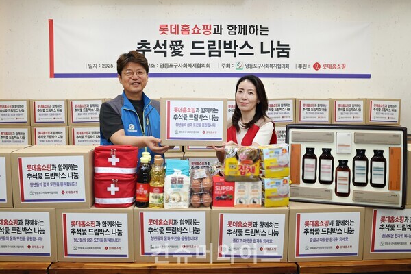 25일 롯데홈쇼핑에 따르면, 지난 24일 서울 영등포 지역 사회적 배려 계층 200세대에 맞춤형 지원 물품을 담은 추석愛 드림박스’를 전달했다. 올해는 기존 독거노인 중심에서 한부모 가정, 자립청년 세대까지 수혜 대상이 확대됐다. 독거노인 가정에는 건강식품과 응급키트, 한부모 가정에는 건강식품과 간편식, 자립청년 세대에는 간편식과 치약, 샴푸 등 생필품을 각각 전달했다.