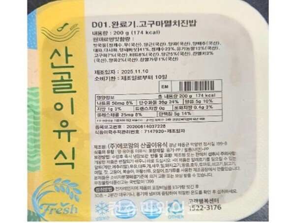 이에 식약처가 하동군청에 해당 제품을 신속히 회수 조치하도록 지시했다. 회수 대상은 에코맘의 산골이유식이 제조 판매한 고구마멸치진밥으로 소비기한이 2025년 11월 10일인 625개(개당 200g), 125kg이다.