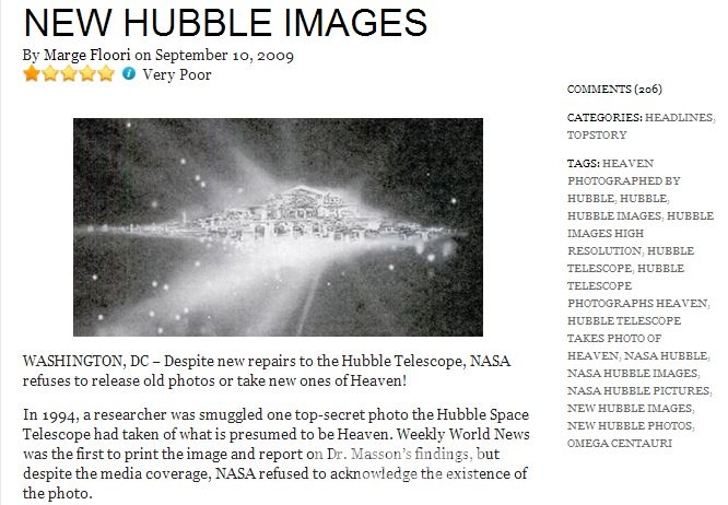 기사원문(http://weeklyworldnews.com/headlines/11684/new-hubble-images)
