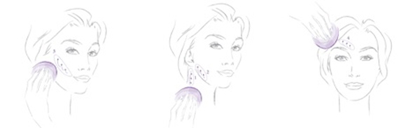 우선 턱에서 시작하여 위 쪽으로 움직여 준 후 아래 쪽으로 지긋이 누르며 내려준 뒤 움직임을 길게 하여 양쪽 얼굴에 같은 동작은 3번 반복해 날렵한 턱선과 목선을 만들어 준다. 그 다음 입 꼬리에서 시작해 광대뼈까지 짧은 스트록으로 양쪽 얼굴에 같은 동작을 3번 반복해 얼굴 윤각을 또렷이 살려준다. 이때 눈가는 피해야 한다. 마지막으로 매끄러운 이마를 만들 차례. 방법은 눈썹 사이사이에서 시작해 헤어라인까지 짧게 끊어주는 동작으로 이마를 쓸어 올리는 동작을 3회 이상 반복하면 된다.