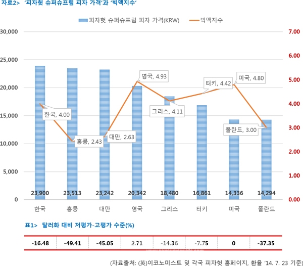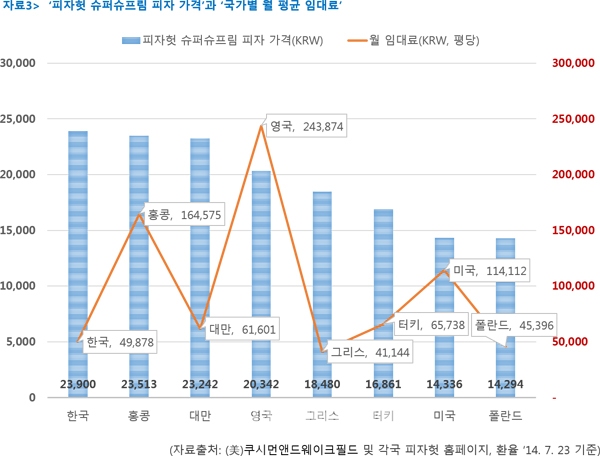피자헛 국가별 피자가격 차이…환율, 물가, 임대료 등 국가별 환경요인 분석결과 '관계 없음'